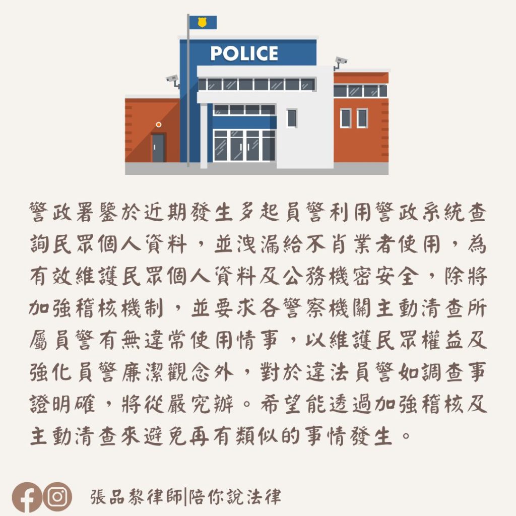 #張品黎律師 #陪你說法律 #警察人員人事條例 #刑法 #個資法 #偷拍 #公務人員服務法