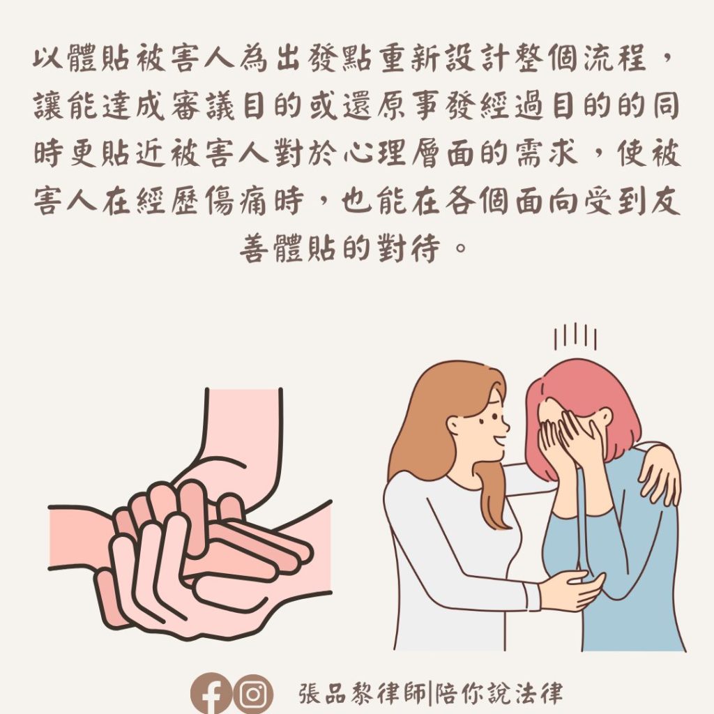 ►►在2021年改革之前對於犯罪被害人聲請補償金審議方式往往都是使用「刑事傳票」方式傳喚被害人到庭,同時也會以「刑事偵查庭」作為詢問地點,這樣的形式通常會增加被害人緊張與焦慮感,甚至誤解自己是被調查的對象,因此在補償金審議流程中改革了幾個部分,分別是: